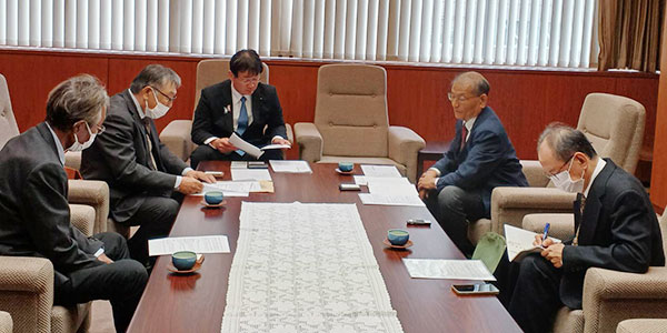 | 川島太郎愛知県議会議長(中央)に陳情する愛腎協役員の皆さん |