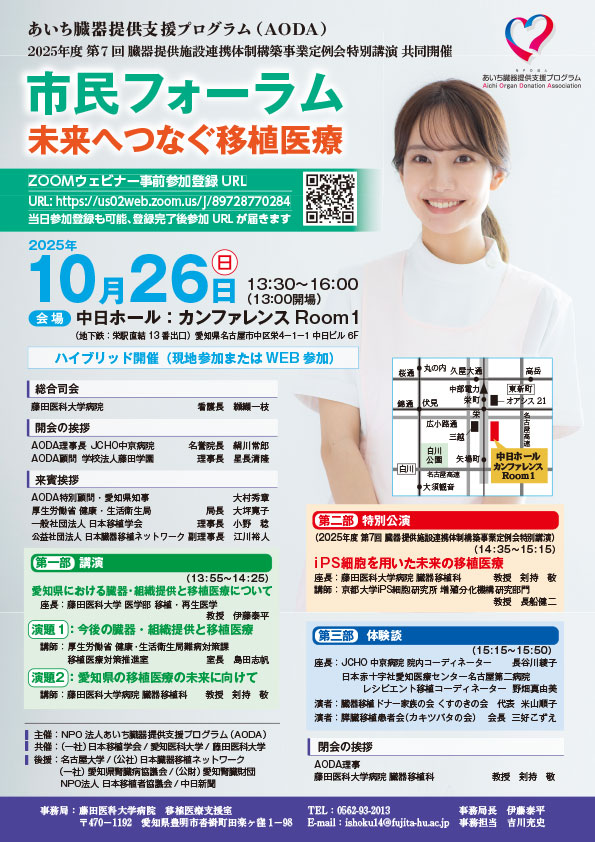 NPO法人「あいち臓器提供支援プログラム(AODA)」市民フォーラム