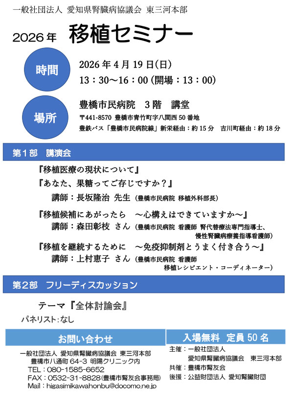 ♥主催:一般社団法人愛知県腎臓病協議会 東三河本部