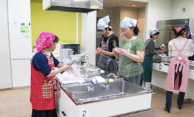 | 参加者で記念撮影 | 調理実習風景 |